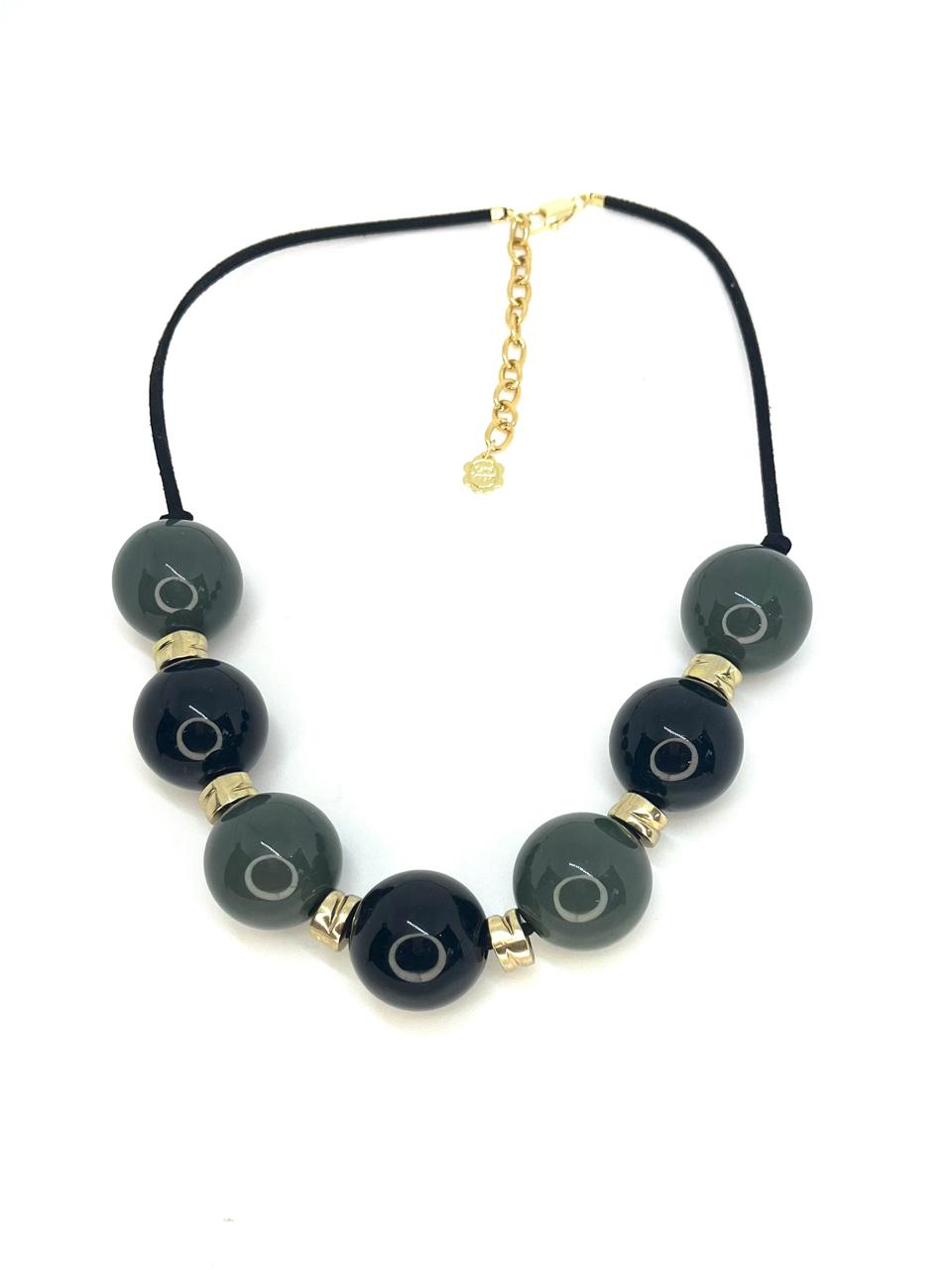 Colar 1v. camurça com bolas de resina verde militar e preto