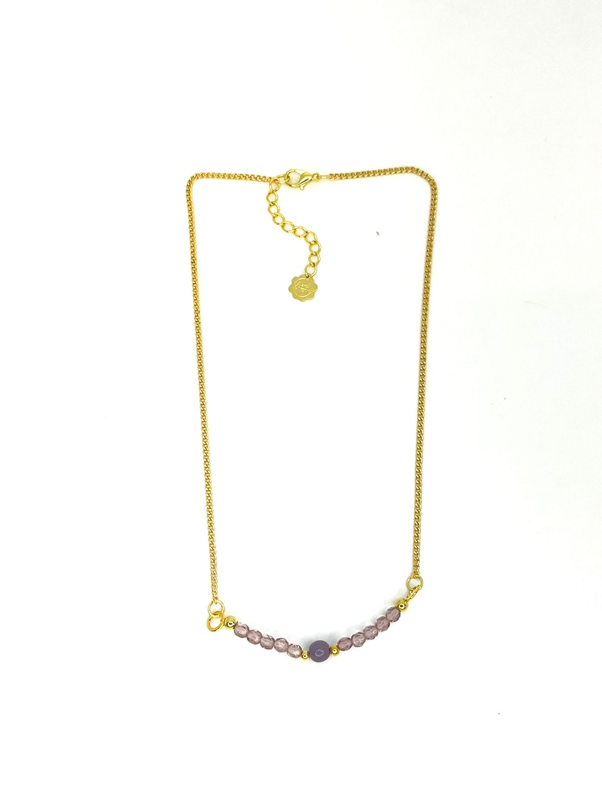 Colar curto 1v. de corr. fina dourada e cristais pequenos - lilas