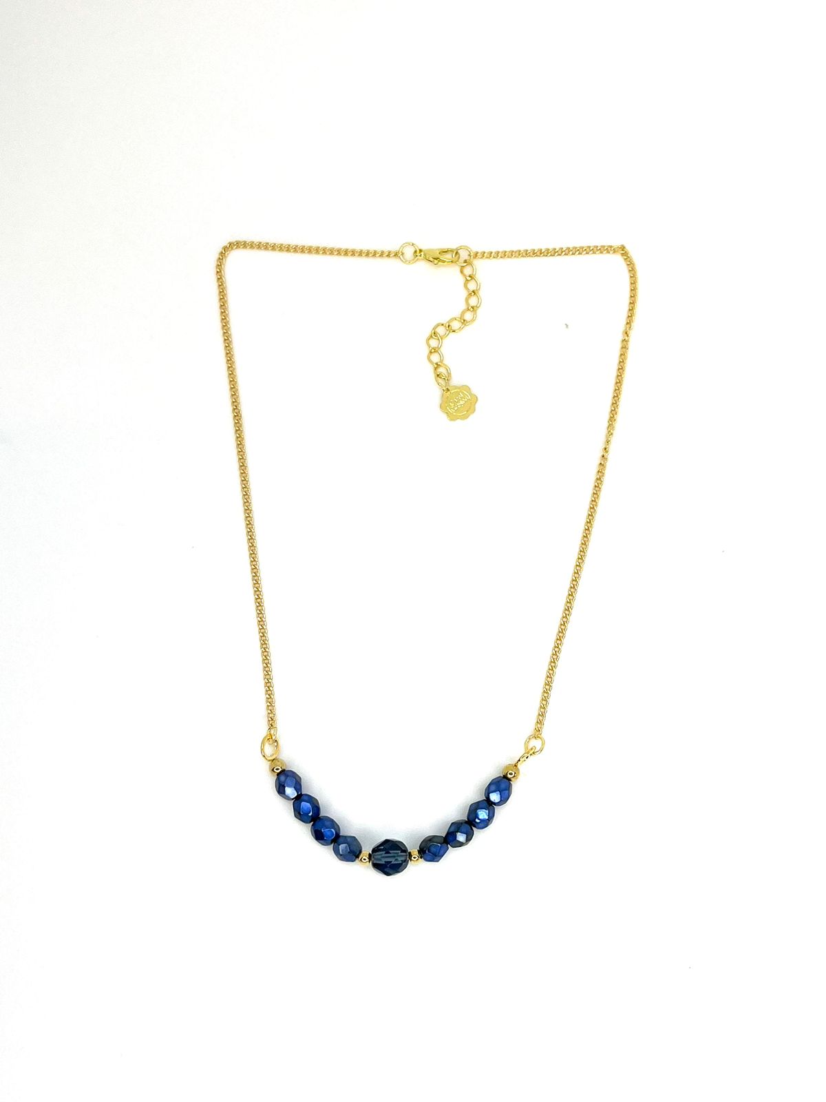 Colar curto 1v. de corr. fina dourada e cristais pequenos